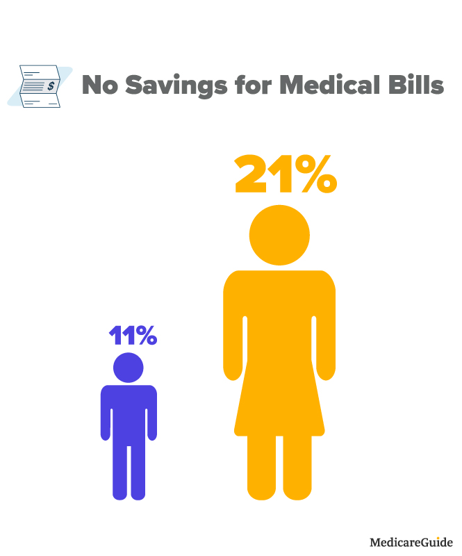 21% of older women report zero savings for medical bills, compared to just 11% of older men.