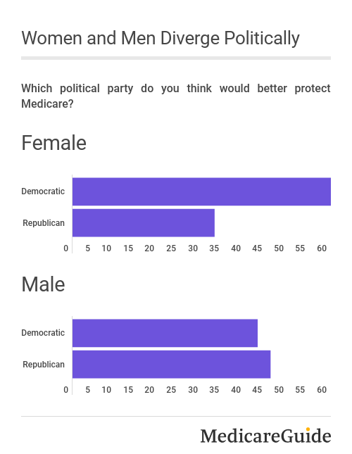The gender divide was also reflected in respondents’ political views. Six in 10 (60%) women said Democrats would better protect Medicare, compared to a little over four in 10 (43%) men.