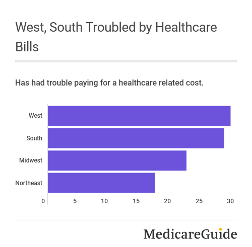 29% of Medicare recipients aged 65 plus in the West reported trouble paying health related costs within the past year, and a similar 28% in the South.